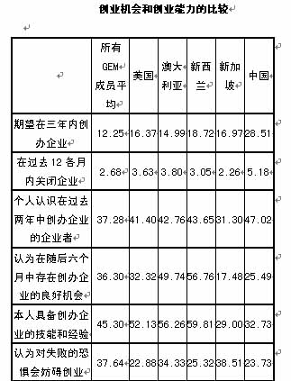 (1)中國在全球的創(chuàng)業(yè)活動中處于活躍狀態(tài)。中國的創(chuàng)業(yè)活動在2005年更為活躍狀態(tài)。2005年,中國的全員創(chuàng)業(yè)活動指數(shù)為13.7,即每100位年齡在18-64歲的成年人中,有13.7人參與創(chuàng)業(yè)活動。在2005年的全球創(chuàng)業(yè)觀察成員中處于前列,排名第五位。在2002和2003年排名均為第九位。全員創(chuàng)業(yè)活動指數(shù)在2003年是11.6。在2003年時,該指數(shù)排在美國的后面,2005年排在美國的前面,而且,在順序上排在35個國家中的第5位。