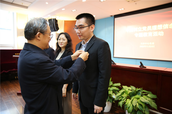 活動首先宣讀了科技部火炬中心黨委對接收陳彥、孫翔宇、蔡子航三位同志為中共預備黨員的審批意見。中心黨委副書記、主任賈敬敦同志為三位預備黨員佩戴黨徽。中心黨委委員、副主任盛延林同志帶領三位預備黨員進行宣誓,新黨員對黨和人民作出莊嚴承諾,全體黨員一同重溫入黨誓詞,進一步激勵新老黨員增強責任感和使命感,嚴格踐行入黨誓言。