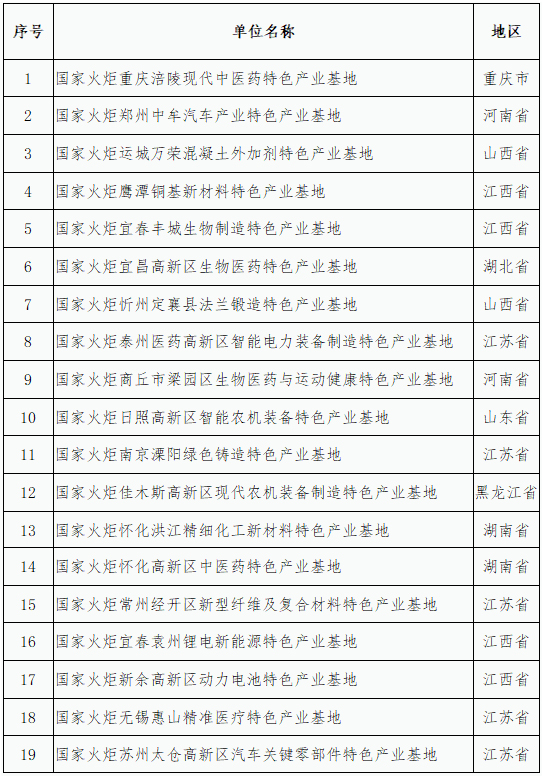 附件:關于擬核定為2020年第一批國家火炬特色產業基地名單的公示