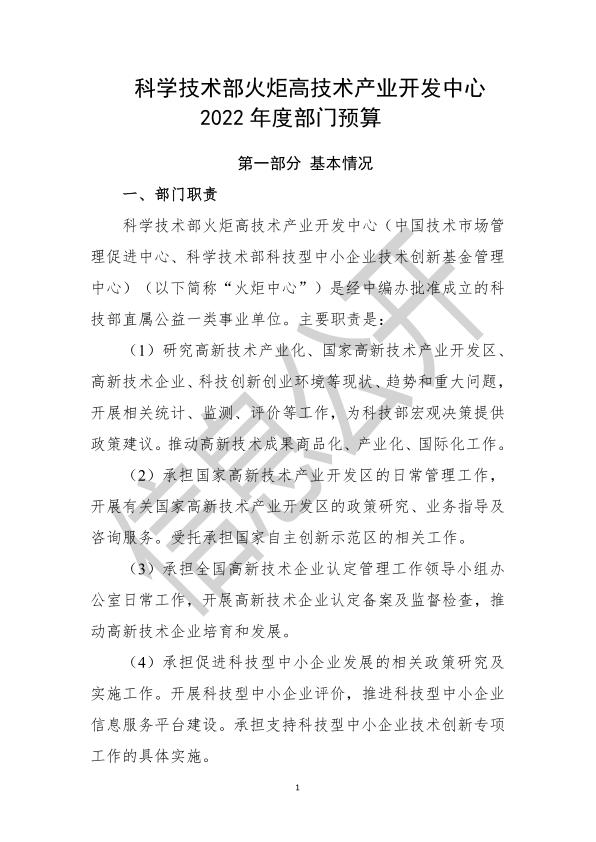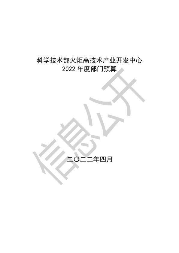 科學技術部火炬高技術產業開發中心2022年度部門預算