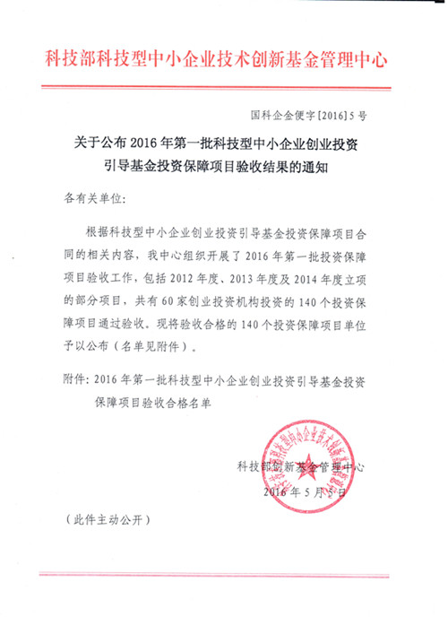 附件:2016年第一批科技型中小企業創業投資引導基金投資保障項目驗收合格名單